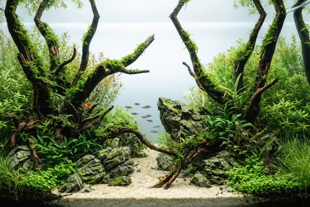 ネイチャーアクアリウムは、水草や流木・石を使って、