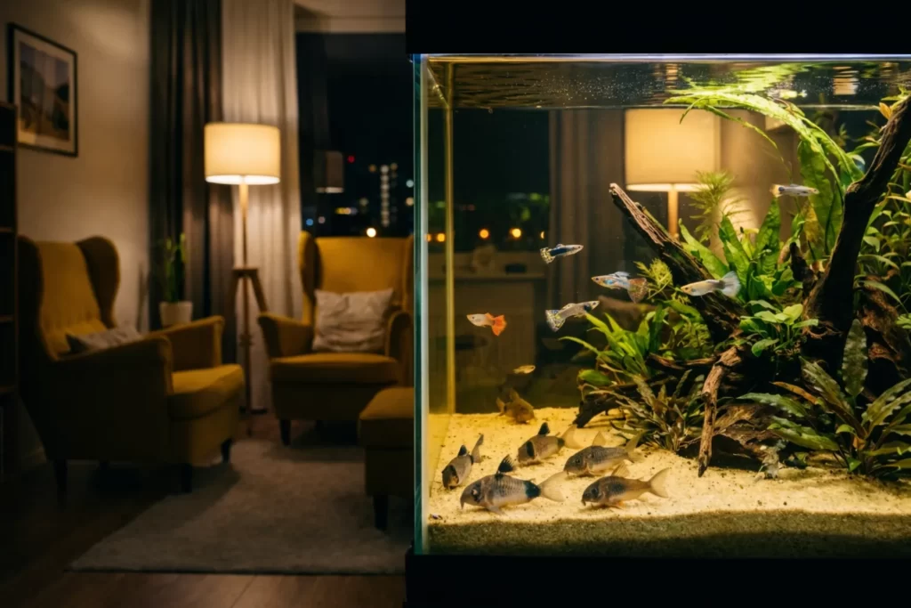 リビングでアクアリウムを楽しんでいる