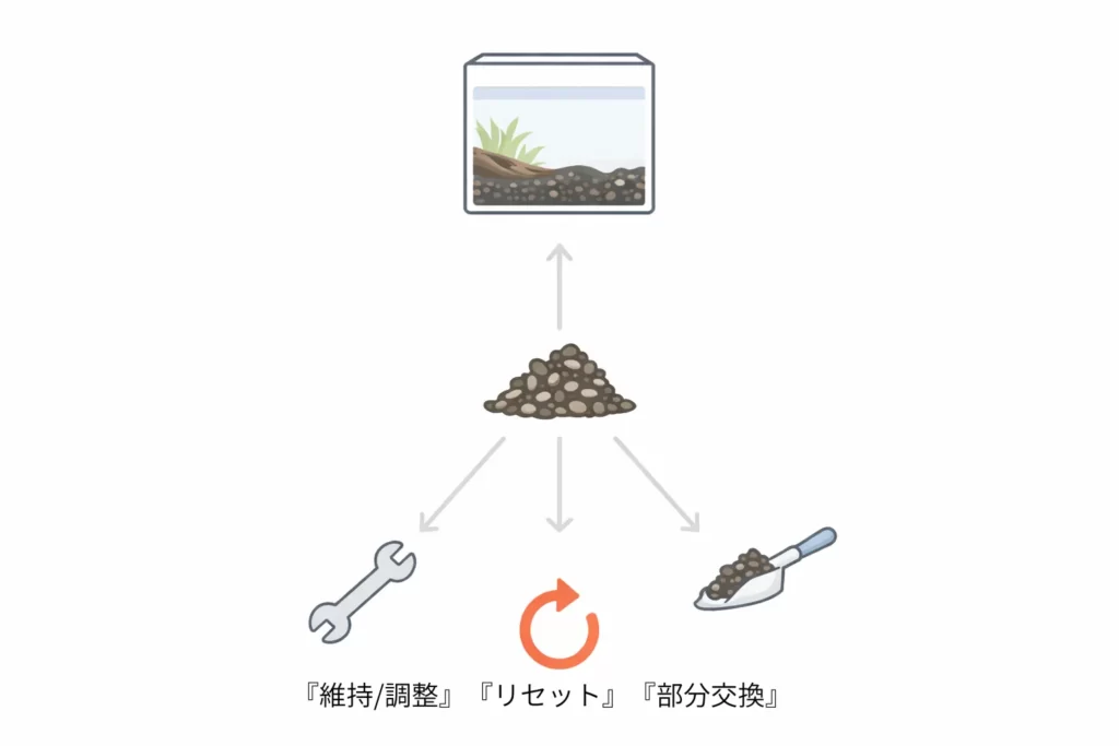 あなたの水槽がどれに当てはまるか分かると、対策がブレなくなります。